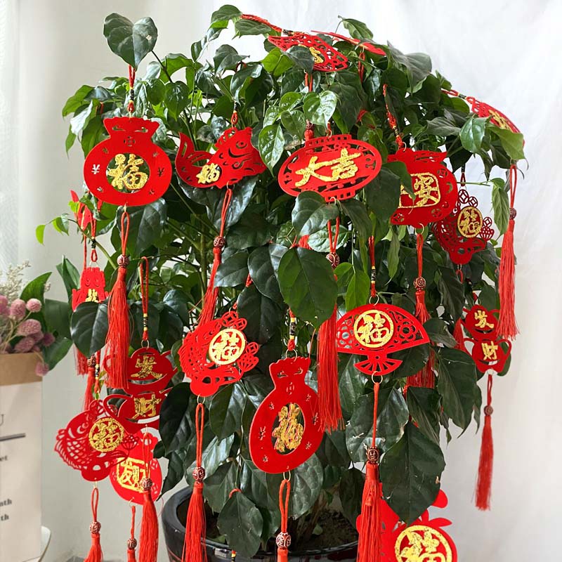Description: √ Made of high-quality flocking cloth, bright, festive and not easy to fade. The hollow engraving process is simple, elegant, and durable. √ The Spring Festival pendants use bright red, a classic Chinese lucky color, and are designed with Chinese traditional patterns, which mean health, good fortune and wealth. √ Can be hung on the door, mantels, trees, potted plants, cars, bags and other places.