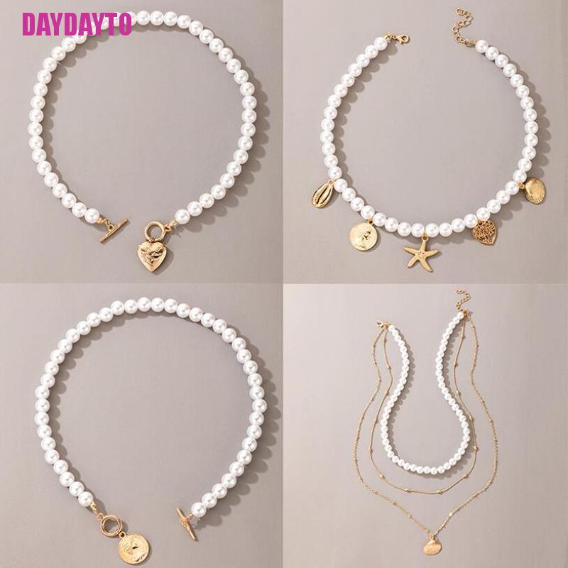 Giới thiệu [DAYDAYTO] Vòng Cổ Choker Ngắn Nhiều Lớp Đính Vỏ Sò Và Ngọc Trai Nhân Tạo