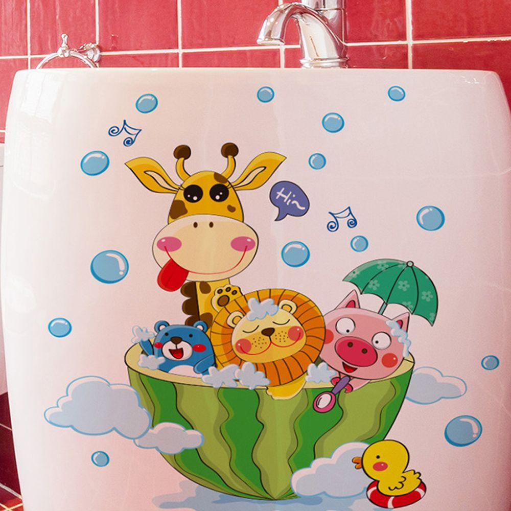 Đề Can Dán Tường Tự Dính Hình Sư Tử / Hươu / Sư Tử Trang Trí Phòng Tắm Cho Bé Có Thể Tháo Gỡ