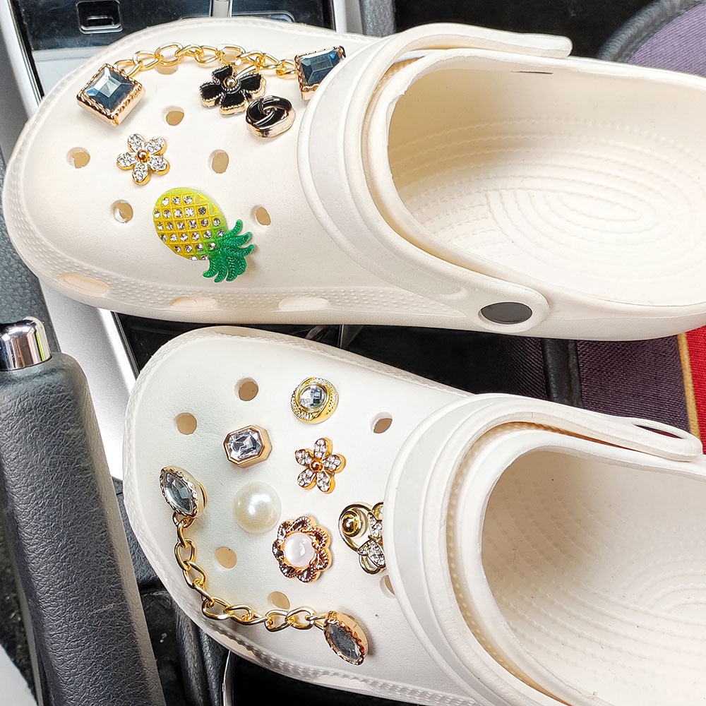 Giới thiệu dép crocs đế cao 7cm kèm stick dứa , đính đá dây xích [A10]
