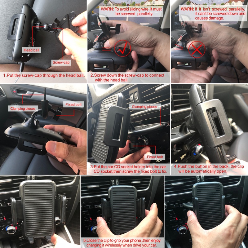 Giá đỡ điện thoại CD-Slot Bộ sạc ô tô không dây 10W Qi Sạc nhanh trên ô tô Giá đỡ điện thoại trên ô tô Các tính năng: Giá đỡ sạc ô tô không dây kết hợp bộ sạc không dây nhanh chóng và giá đỡ điện thoại cho ô tô với một thiết kế hoàn hảo. Tiết kiệm thời gian của bạn để săn bắn bộ sạc sẽ cắm vào khi lái xe và đảm bảo đủ tuổi thọ để sử dụng GPS. Xoay bu lông cố định để kẹp bộ sạc trong ổ cắm CD trên ô tô, xoay hoàn toàn 360 độ cho phép xem tối ưu và sử dụng dễ dàng hơn, đó là cách an toàn nhất để truy cập vào các hệ thống điện thoại của bạn như Gps và các cuộc gọi điện thoại của bạn. Công nghệ Bảo vệ Thông minh Đa chức năng độc quyền cung cấp khả năng kiểm soát nhiệt độ, chống sét lan truyền, ngăn ngừa ngắn mạch và hơn thế nữa. Hệ thống kiểm soát nhiệt độ thông minh đảm bảo sạc mát hơn nhưng hiệu quả hơn; Cuộn dây đồng cao cấp giúp sạc an toàn hơn và có khả năng tản nhiệt tốt. Không cần tháo điện thoại khi sạc. Giá đỡ ô tô có thể giữ tất cả các điện thoại có chiều rộng 60-80mm, hoạt động rất tốt cho tất cả điện thoại hỗ trợ QI. Bộ sạc nhanh tối đa 10W cho S10 / S9 / S8 / S7/ Lưu ý 5, Bộ sạc nhanh tối đa 7,5W cho điện thoại XS max / XS / XR / X / 8, 5W cho các điện thoại hỗ trợ Qi khác. Đối với chế độ sạc nhanh 10W, 7,5W, cho bộ chuyển đổi sạc ô tô QC 3.0 là cần thiết làm nguồn điện thoại của nó. Đệm sạc không dây ô tô được làm bằng đồng hồ đo mức độ giống như trang trí nội thất ô tô, đẹp hơn và bền hơn. Đế dưới mỏng siêu chắc chắn chống trơn trượt để giữ và giữ cố định bộ sạc của bạn, tránh rơi rớt, đảm bảo trải nghiệm sạc không dây tốt. Bạn có thể đặt nó trên ô tô CD-Slot.