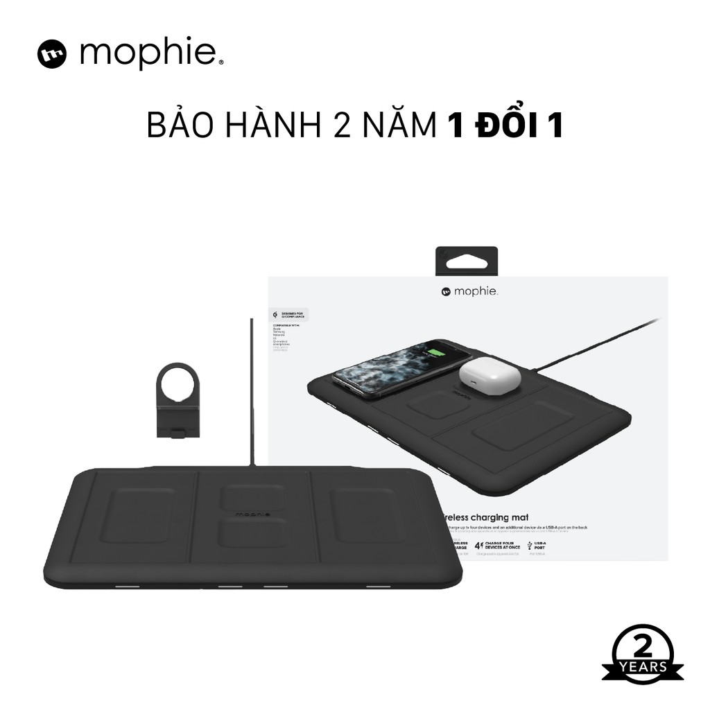 * Thông số kỹ thuật: Tên sản phẩm: Đế sạc Mophie 4in1 Kích thước: 28.2 cm x 19.2 cm x 1.6 cm Trọng lượng: 606 g Màu sắc: Đen Output (Qi): 10W Max Output USB-A: 5W Max Total output: 15W Max