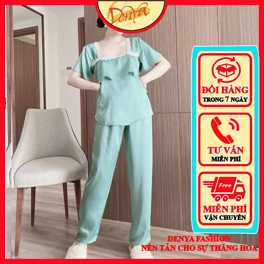 Giới thiệu Đồ bộ dễ thương DenYa dạng quần dài, chất satin, kiểu dáng nữ tính quyến rủ mà không kém phần sang trọng, DB20