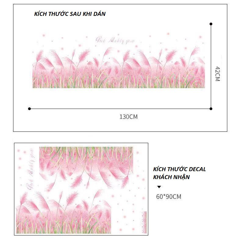 Giới thiệu Decal dán chân tường ⚡ FREESHIP ⚡ Cỏ bông lau màu hồng Amyshop