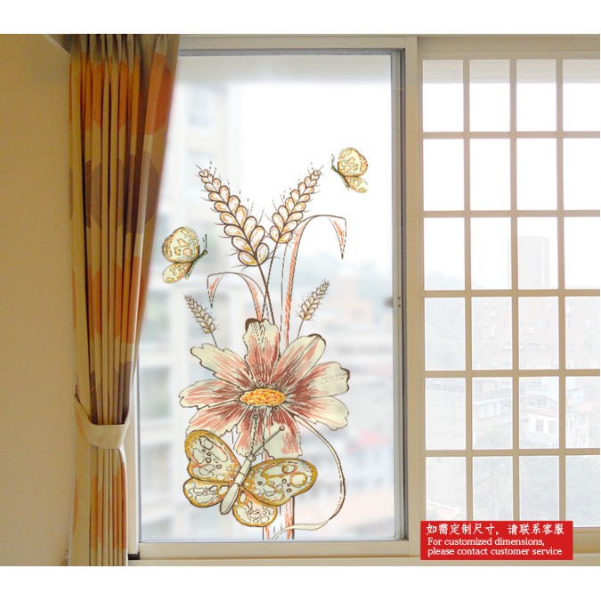 Giới thiệu Decal dán kính cao cấp - Bông Lúa và bướm ( 60x116)