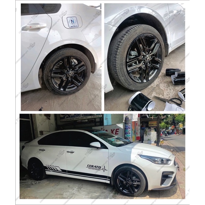 Sản phẩm dán mâm Cerato độc quyền bên shop Là miếng dán decal đen bóng được cắt sẵng bằng máy tính, dán vào mâm zin để bắt mắt hơn Cách Dán: Bước 1: Lau sạch mâm cần dán,đảm bảo mâm không dính dầu khi rửa xe (Mâm càng khô dán càng chắc) Bước 2:tháo miếng dán và dán lên mầm như clip shop gửi bên zalo Lưu ý: Miếng dán Sẽ thừa ra mỗi bên 1 đến 2mm phần thừa đó sẽ hơ quẹt để cho bán chắc vào phần sơn (nên dùng quẹt sẽ bám chắc hơn máy sấy tóc thông thường) Bước 3: kiểm tra kỹ phần thừa có bám chắc vào phần Sơn hay chưa đảm bảo không hở thì độ bám sẽ cao Zalo Shop để có clip hướng dẫn dán rõ hơn 0868866471 (đức)