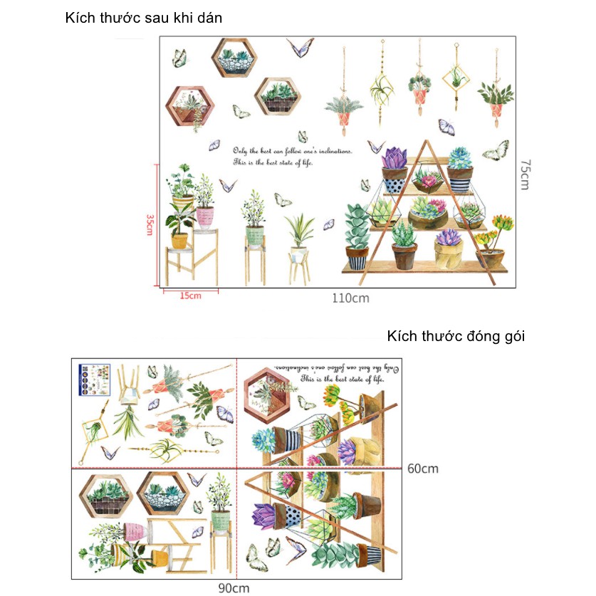Decal trang trí chất liệu PVC có thể lau chùi bằng nước, công nghệ in sắc nét, chất lượng cao, không bay màu. Decal có sẵn keo ở mặt sau, chỉ cần lột ra và dán lên. Decal dán từng chi tiết rời, chỉ cần tham khảo hình mẫu và dán lên theo đúng vị trí. Có thể thay đổi vị trí hoặc cắt bỏ bớt chi tiết tùy vào ý thích riêng mỗi người. Decal thích hợp dán trên tường phẳng, tường sơn, tường vôi phẳng, bề mặt kính, ván, thạch cao, gạch men... không bền khi dán trên tường nhám, tường bong tróc, ẩm mốc. Có thể dùng máy sấy tóc sấy nóng và ép chặt decal vào tường để tăng độ bám dính đối với tường xấu, khó dán. 🍀 Kích thước mặc định CHÍNH XÁC 100% theo sản phẩm, giúp bạn dễ dàng lựa chọn mẫu phù hợp với ngôi nhà thân yêu Trọng lượng: 300g