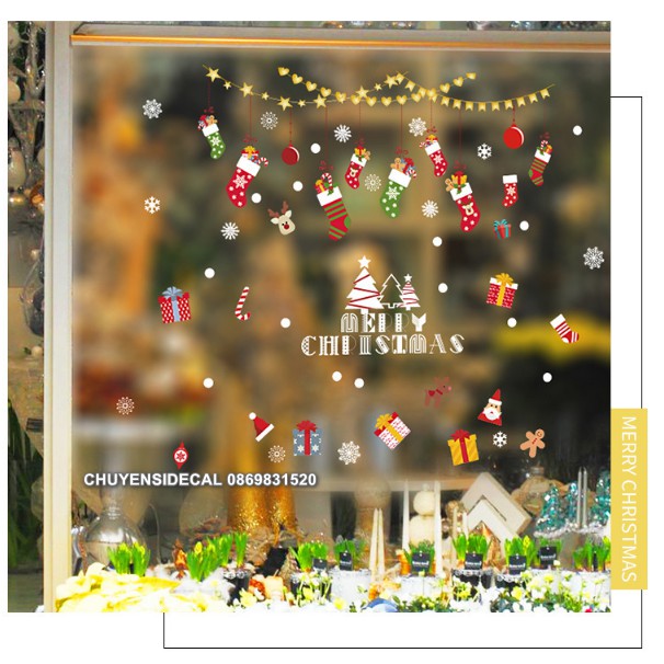 Giới thiệu Decal dán tường Noel - Rèm kim tuyến sao tim Kết hợp Vớ sắc màu giáng sinh