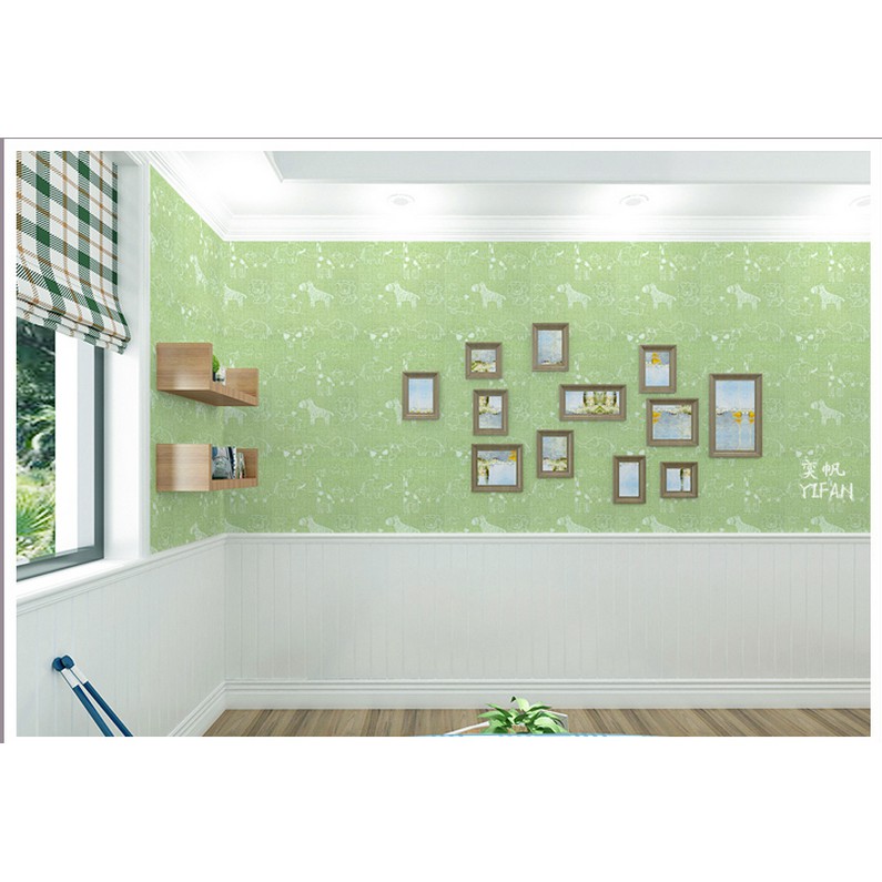 Giới thiệu Decal giấy dán tường vườn thú xanh lá khổ 45cm keo sẵn