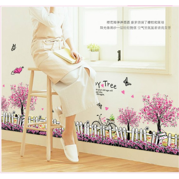 Giới thiệu Decal trang trí chân hàng rào hoa HAPPY TREE