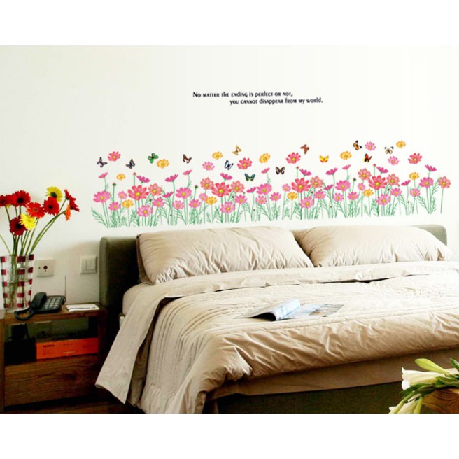 Giới thiệu Decal trang trí chân tường Hoa Dại nhiều màu cùng bướm