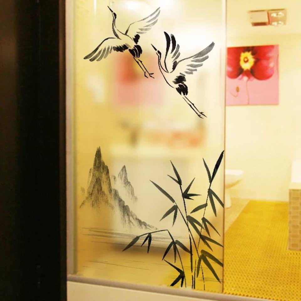 Giới thiệu Decal trang trí kính cao cấp mẫu phong cảnh Sơn Thủy và 2 Con Cò (60cm x 116cm)