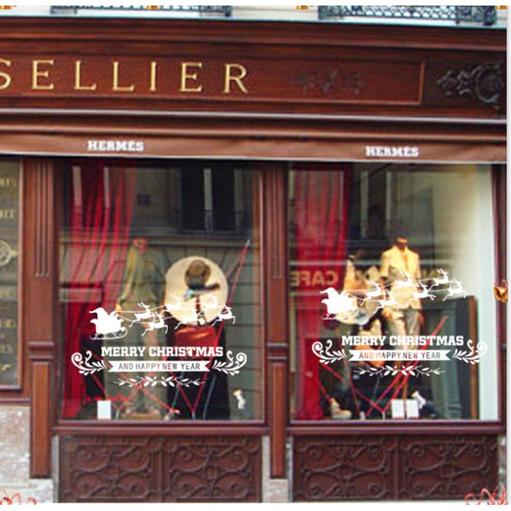 Giới thiệu Decal Trang Trí Noel Hít Tĩnh Điện 2 Mặt Không Dơ Kính Mẫu Đoàn Xe Tuần Lộc