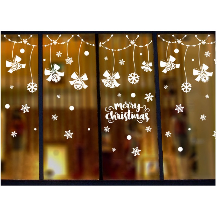 Giới thiệu Decal Trang Trí Noel Rèm dâu Nơ Chuông trắng