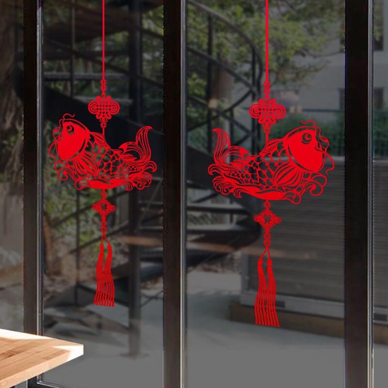 Giới thiệu Decal trang trí tết - 2 dây hỷ cá chép đỏ chào xuân