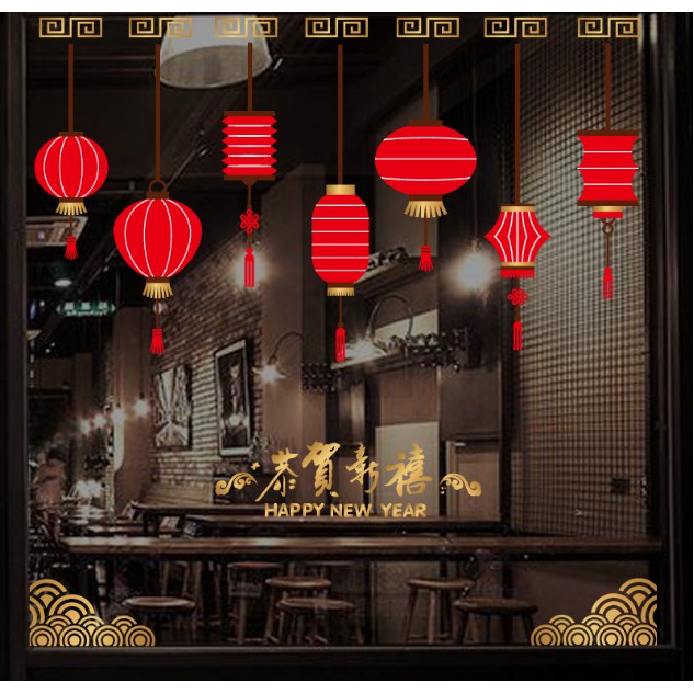 Giới thiệu Decal trang trí Tết - Rèm Dây Lồng Đèn Đỏ kèm chữ vàng ánh