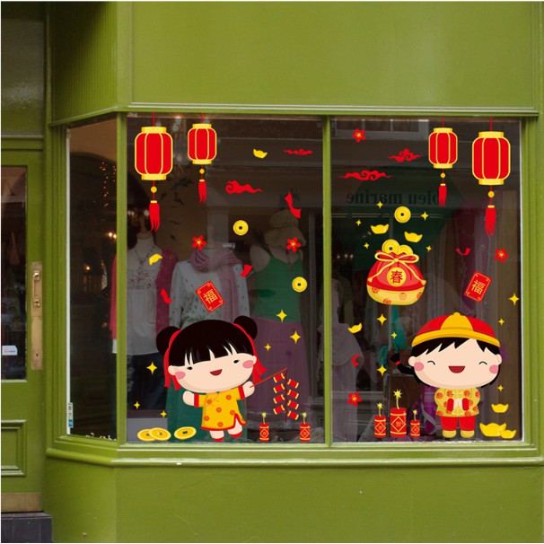 Giới thiệu Decal trang trí tết - Trai Gái Hoạt hình mừng xuân tại lộc