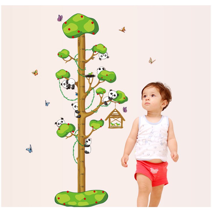 Giới thiệu Decal trang trí thước đo thân Cây Xanh nhiều nhánh và Gấu trúc tinh nghịch