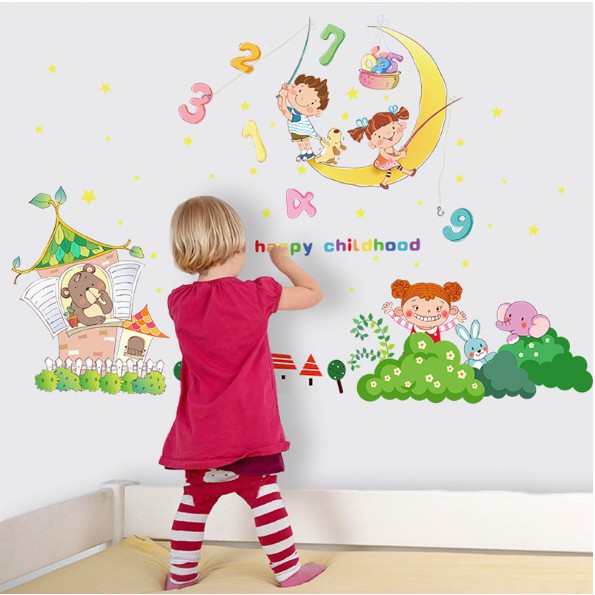 Giới thiệu Decal trang trí tường Bé cưỡi Trăng Số Happy Childhood