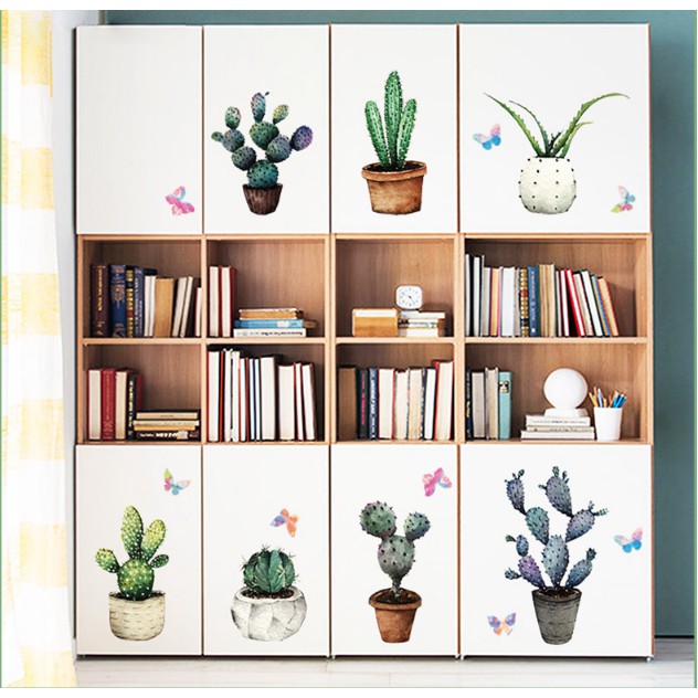 Giới thiệu Decal trang trí tường - Nhiều chậu cây Xương Rồng Đậm