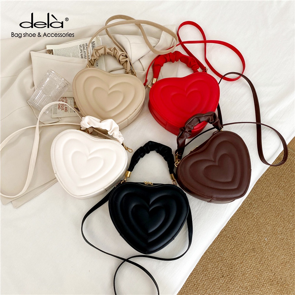Giới thiệu Dela Túi Đeo Chéo Hình Vuông Cỡ Nhỏ In Họa Tiết Trái Tim Thời Trang Hàn Quốc Cho Nữ