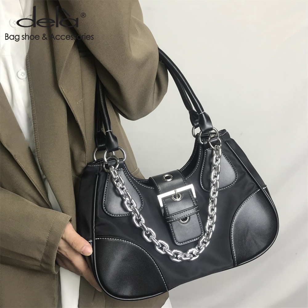 Giới thiệu Dela Túi Đeo Vai Da Bóng Phối Dây Xích Kim Loại Ngọt Ngào Thời Trang Mới Dễ Phối Đồ Cho Nữ
