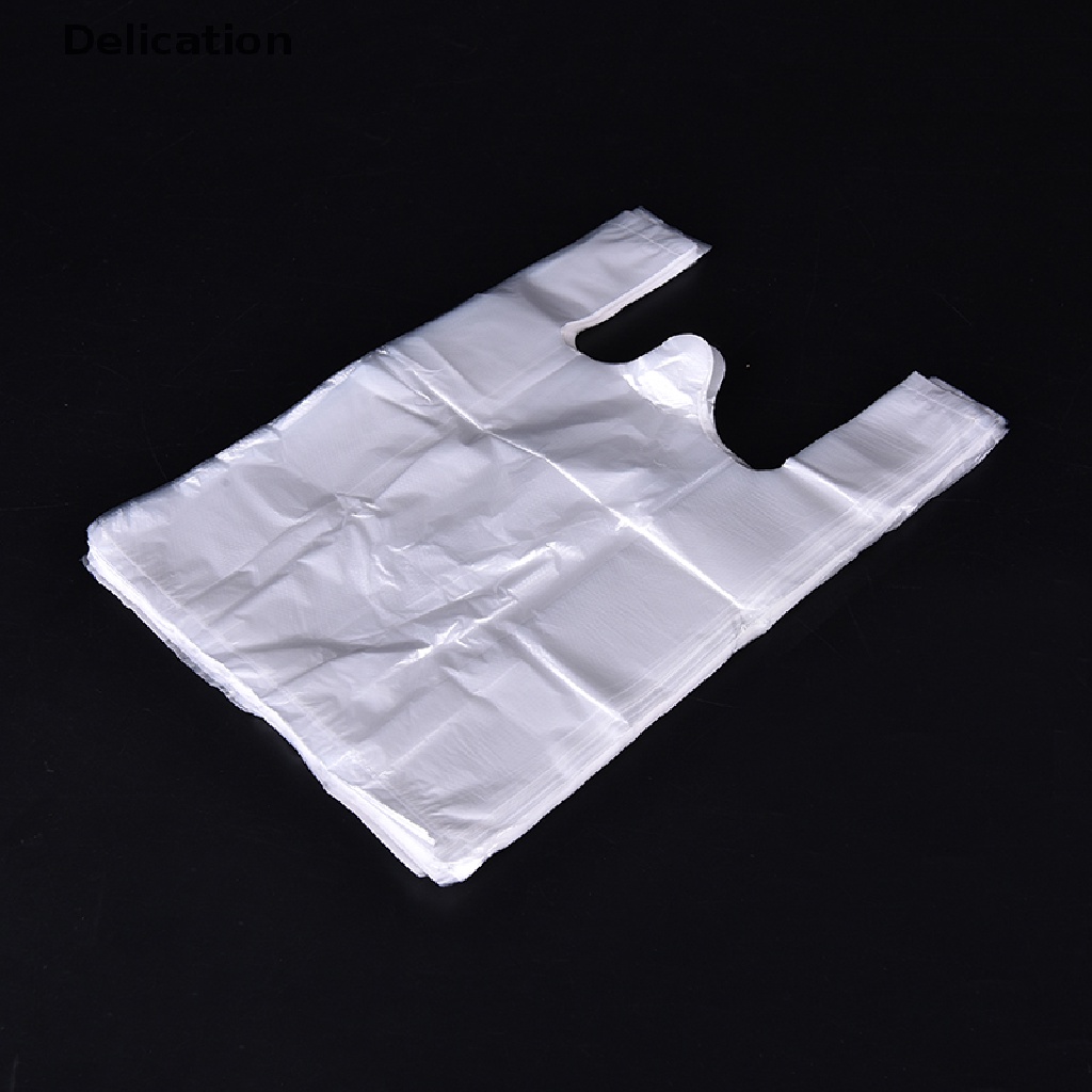 Giới thiệu [Delication] Set 100 Túi Mua Sắm Bằng Nhựa Thiết Kế Đuôi Bán Lẻ Có Tay Cầm Đóng Gói