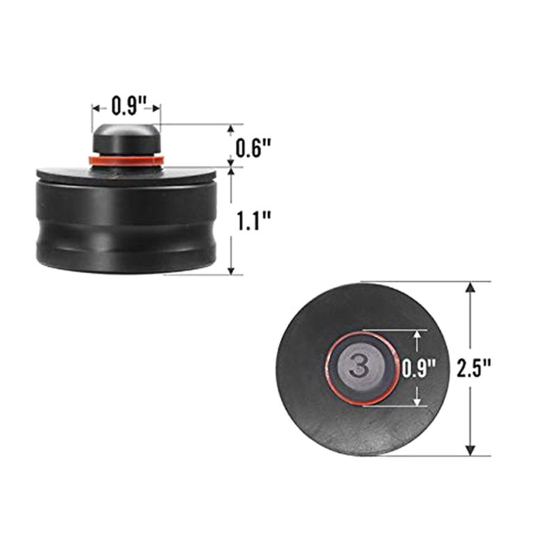 Dụng cụ đệm giắc cắm này được thiết kế để sử dụng với giắc cắm sàn có cốc đáy phẳng có đường kính ít nhất 3 inch và sâu không quá 3 '8 inch . Bốn trong số các công cụ đệm giắc cắm có thể được sử dụng với một thang máy bốn tay để tăng khoảng trống giữa tay nâng và váy bên xe .