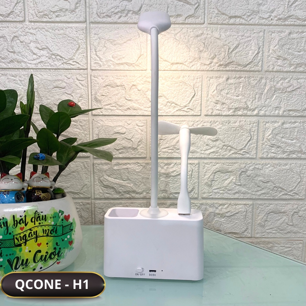 Giới thiệu Đèn bàn bảo vệ mắt đa chức năng Qcone H1 tích hợp quạt USB 3 màu ánh sáng tùy chỉnh độ sáng