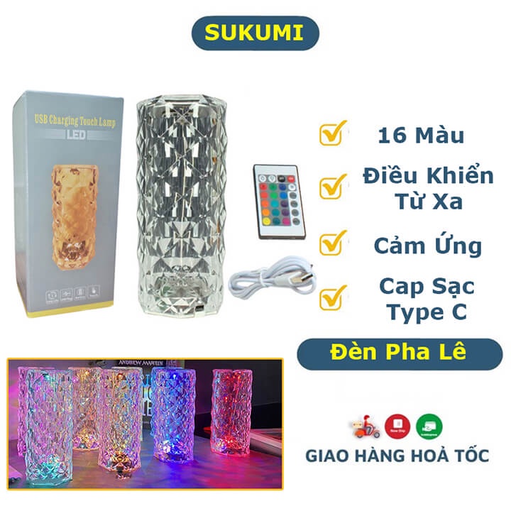 Giới thiệu Đèn để bàn pha lê trang trí decor phòng Led RGB 16 màu cảm ứng chạm, đèn ngủ cao cấp Tặng kèm điều khiển từ xa