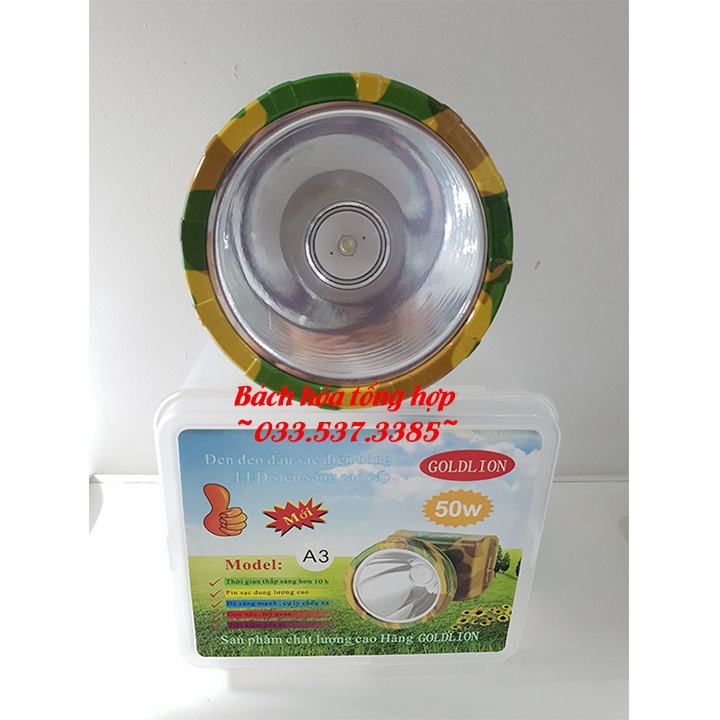 CÔNG DỤNG: - Đèn đeo đầu siêu sáng A3 GOLDLION với tầm chiếu sáng 200m bán kính 2m cho phép người dùng quan sát trong khoảng không gian rộng lớn một cách dễ dàng nhất. - Đèn sử dụng công nghệ Led siêu sáng cho ánh sáng cực mạnh- tập trung vào mục tiêu nhưng vẫn tiết kiệm năng lượng tối đa. - Đèn pin sạc đội đầu dùng bóng led 50W siêu sáng, pin sạc dung lượng lớn giúp chiếu sáng liên tục trong hơn 10h. - Sản phẩm giúp hỗ trợ người dùng chiếu sáng trong những chuyến dã ngoại, làm việc những nơi thiếu sáng hay những ngày mất điện vào buổi tối. - Đèn có mạch điện chống cháy nổ đảm bảo an toàn tuyệt đối cho người dùng trong quá trình sử dụng. - Đèn pin treo đầu có dây đeo chắc chắn tránh rơi vỡ giúp cho người dùng yên tâm di chuyển mà không lo bị rơi.