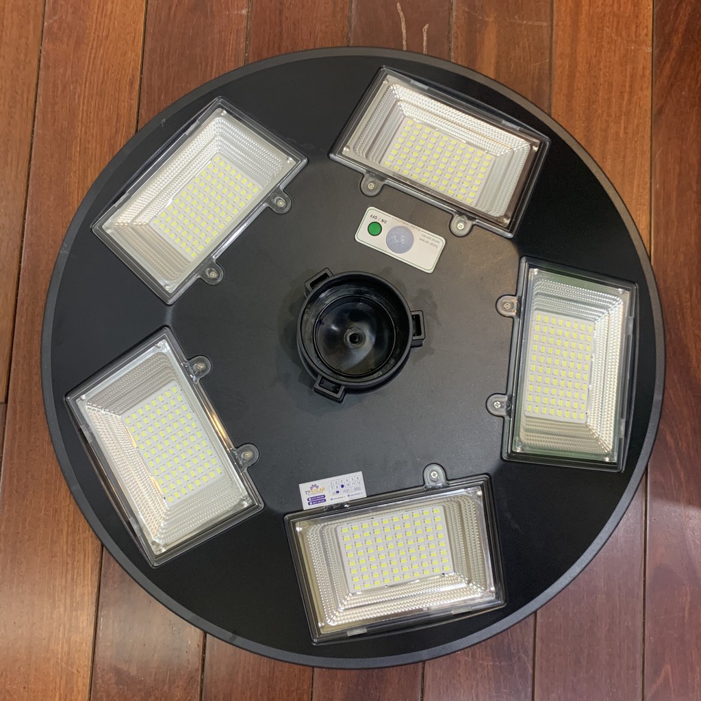 ƯU ĐIỂM NỔI BẬC ĐÈN ĐƯỜNG NĂNG LƯỢNG MẶT TRỜI UFO 250W – Đèn UFO 250w với kiểu dáng đẹp, tất cả trong 1 gồm 5 khoang đèn xung quanh chiếu sáng 360 độ. – Tấm pin lớn ngay trên mặt đèn vô cùng tiện lợi và thẩm mỹ. – Thích hợp lắp đặt Sân vườn, biệt thự, công viên, trang trại … – Đèn có cảm biến chuyển động nếu muốn cho đèn sáng liên tục các bạn có thể cài đặt trên điều khiển hoàn toàn dễ dàng. – Tự động bật khi trời tối, tắt khi trời sáng cho cuộc sống dễ dàng hơn bao giờ hết. – Đèn được tích hợp thêm điều khiển tắt bật từ xa và hẹn giờ thông minh. – Đèn rất bền & ít hỏng, thời gian sử dụng từ 3-5 năm thoải mái. – Dễ dàng lắp đặt, không cần đi dây điện lằng nhằng. – Sử dụng chip LED 3030 cao cấp độ sáng cao và phủ sáng rộng tiết kiệm năng lượng. THÔNG SỐ KỸ THUẬT Model: UFO 250W Hãng: JINDIAN Sản xuất: Trung Quốc Bảo hành:1 năm UFO: 250w Đèn LED: 400 chip led (5 khoang đèn) Bảng điều khiển năng lượng mặt trời: 6V 15W, đa tinh thể Loại pin: Lithium-Ion 3.2V 25.000 mah Thời gian sạc: 4 – 6 giờ Thời gian làm việc: 10-15 ngày hoặc nhiều mây Chất liệu: Nhựa ABS + Kính Cường Lực Kích thước đèn: 67 x 44 x 44 cm