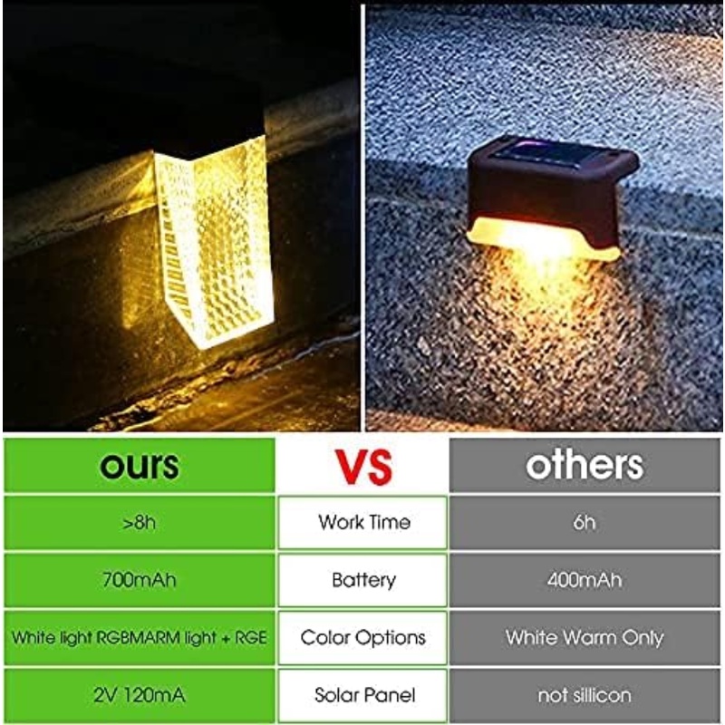 ★★★Mô tả sản phẩm★★★ Ánh sáng hàng rào nhà ngoài trời năng lượng mặt trời. thiết kế góc vuông , tạo ra ánh sáng và bóng tối quyến rũ . Thay đổi ánh sáng cảm biến thông minh. tự động bật đèn . Sạc đầy trong 6-8 giờ trong điều kiện nắng . Tự động sạc vào ban ngày và sáng vào ban đêm . Chống thấm ngoài trời IP65 , chống mưa và chống sét , cung cấp điện không bị gián đoạn và chiếu sáng bình thường vào những ngày mưa . Đặc điểm kỹ thuật Chất liệu “ ABS + nhựa PC Kích thước " khoảng 9 * 9 * 4cm Màu sắc xuất hiện ' đen + trong suốt Màu ánh sáng - ánh sáng ấm + ánh sáng màu / ánh sáng trắng + ánh sáng màu Chế độ chiếu sáng - ánh sáng ấm và ánh sáng trắng luôn bật / độ dốc thở ánh sáng màu ( có thể chuyển đổi) Giờ làm việc-8-10 giờ Mức độ bảo vệ ” IP65 Nguồn sáng - 2 hạt đèn LED Bảng điều khiển năng lượng mặt trời - Tấm silicon đơn tinh thể 2V 120mAh 0,24W Pin - 1.2v 300 mAh NiMH Các cảnh áp dụng - trang trí sân / công viên / vườn Số lượng × 1 Gói bao gồm ' 1 * ánh sáng mặt trời 1 * Keo dán sao lưu 1 " Chụp 2 " Vít 1 " Hướng dẫn sử dụng