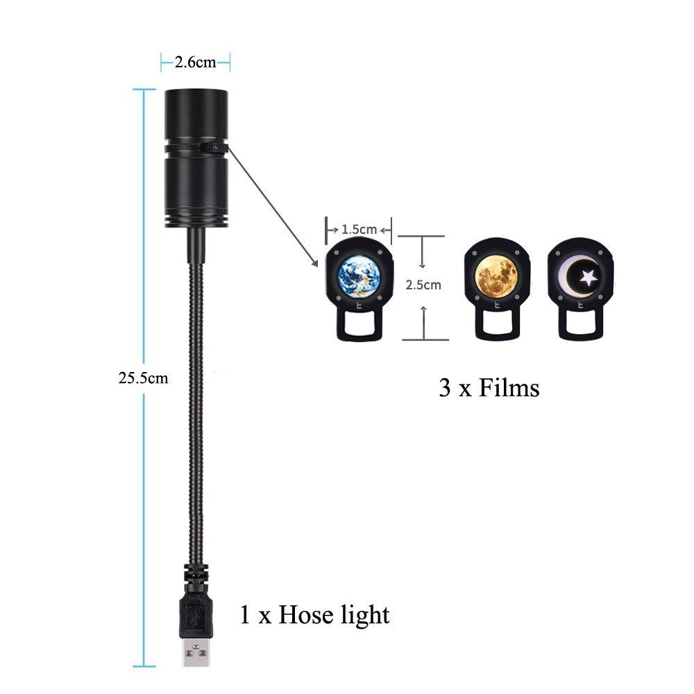 Danh sách đóng gói: 1 * Đèn chiếu; 2/3 * Phim (Địa đất và Mặt trăng) / 1 * Giá đỡ Điện áp đầu vào: DC5V