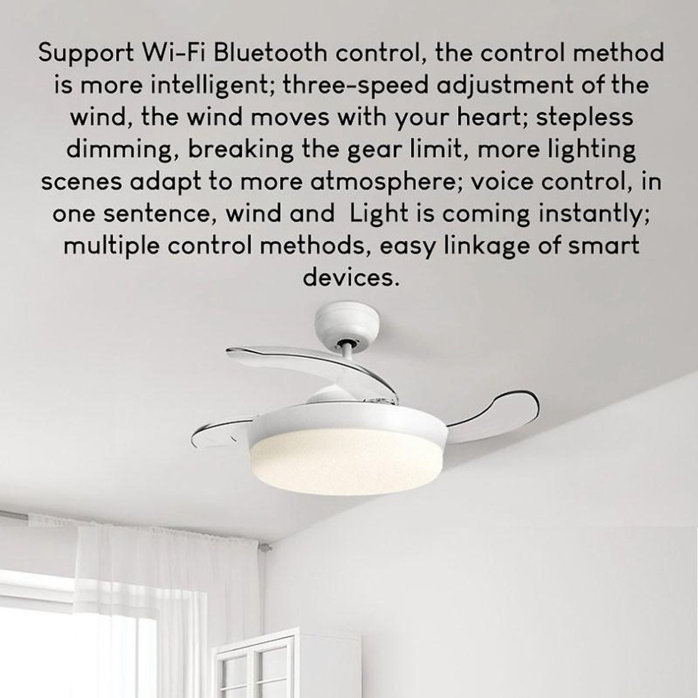 TÍNH NĂNG NỔI BẬT - Hai tính năng kết hợp trong một: đèn treo trần và quạt trần, người dùng có thể dùng cùng lúc cả 2 tính năng trên hoặc có thể dùng 1 trong 2 tính năng đó tùy ý, khi bật quạt cánh sẽ tự động bung ra và khi tắt quạt cánh sẽ tự động cụp lại cất giấu phía trên để trở thành một chiếc đèn treo trần đích thực.