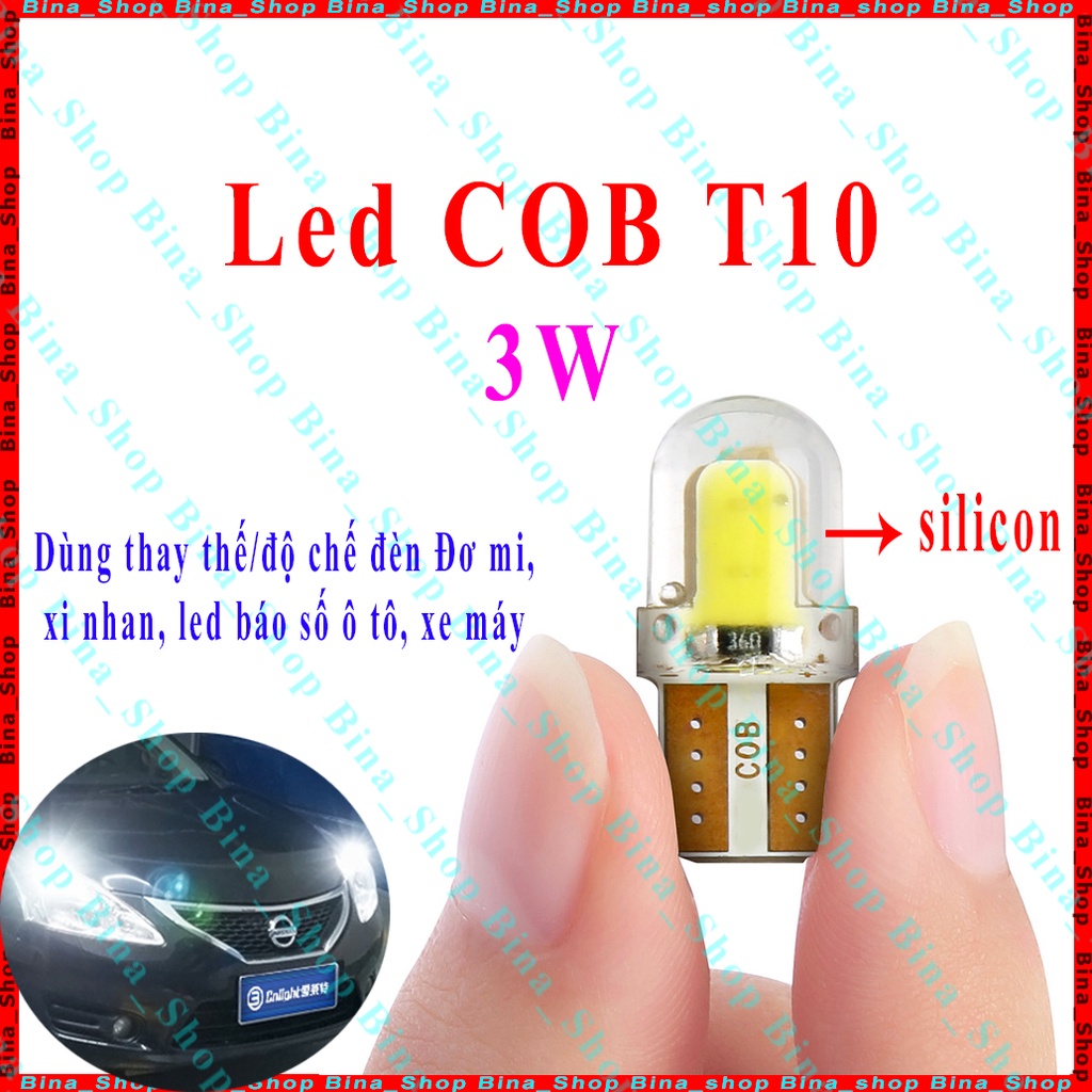 Đèn led silicon T10 3W 12V sáng trắng Led COB cho ô tô, xe máy #T10 #led #silicon #led_silicon #linh_kiện #linh_kien #Bina_Shop #cob #đèn