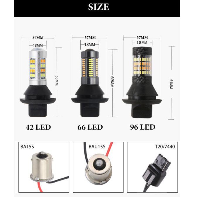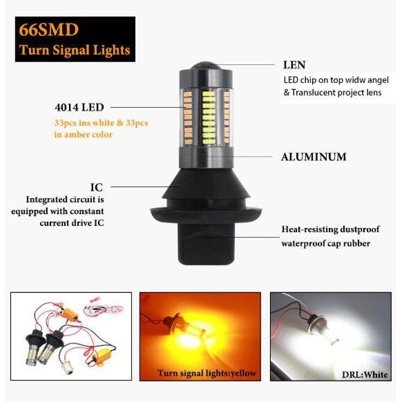 Đặc trưng: Không có báo động bằng kính hiển vi mà không cần giải mã Làm cho chiếc xe của bạn trở nên khác biệt Chức năng: khởi động xe bật chế độ đèn ban ngày, bật khi chuyển số tự động sang chế độ đèn lái Chất liệu: chip LED độ sáng cao, nhôm hàng không tốt PY21W ar led S25 BAU15S 7507 1156 T20 7440 DRL LED T20 7440 WY21W T20 / 1156 LED đèn chạy ban ngày + Đèn LED tín hiệu rẽ DRL Chức năng: khởi động xe bật chế độ đèn ban ngày, bật khi chuyển số tự động sang chế độ đèn lái. Chất liệu: chip LED độ sáng cao, nhôm hàng không tốt. Chế độ: Đèn chạy ban ngày + Đèn báo rẽ. Mục đích: biến chế độ kép. Điện áp làm việc: DC12V. Số lượng Led: 42Led hoặc 66led hoặc 96led Màu LED: Trắng = DRL: Trắng + Đèn xi nhan: Vàng Công suất nhẹ: 1.5W. Kích thước bóng đèn: Như hình ảnh. Gói hàng bao gồm: 1 Cặp Đèn DRL 1156 BA15S BAU15S / t20 7440 / 60LED & Đèn báo rẽ. Lưu ý: Sơ đồ hiệu ứng phát sáng để tham khảo. Sản phẩm tương thích với các kiểu chuôi đèn/ bóng đèn sau: 992, 7440A, 7440AL, 7440NA, 7440, 7440LL, 7440ST, 7440NA, 7441