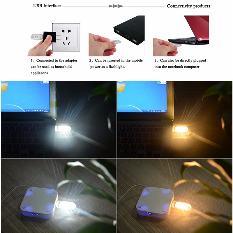 - Đặc điểm: 1. Sản phẩm này là đèn USB phát sáng, không phải đĩa U, không có chức năng lưu trữ. 2. Trong quá trình sử dụng thiết bị có thể bị nóng do nhiệt độ cao, đây là hiện tượng bình thường. 3. Bạn phải dùng nguồn điện từ điện thoại di động, bộ nguồn USB, cổng USB máy tính của bạn để cấp nguồn cho đèn.