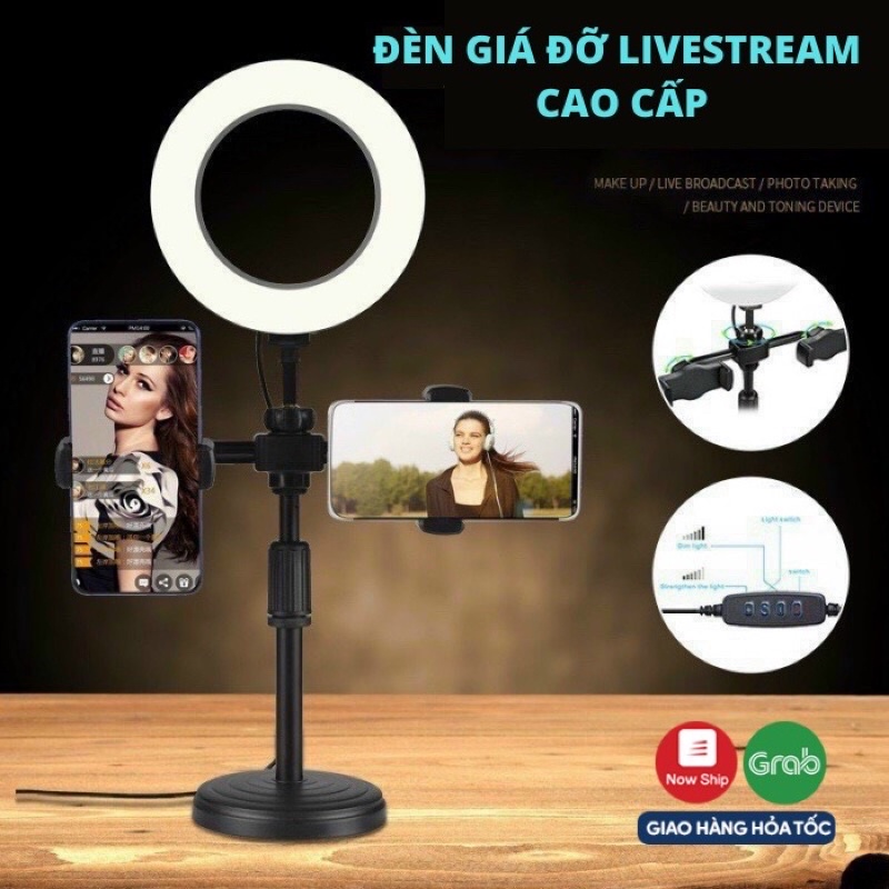 Điện Thoại & Phụ Kiện > Nhiếp ảnh điện thoại > Đèn Flash di động > Đèn livestream để bàn, tích hợp giá đỡ kẹp 2 điện thoại, kiêm đèn led 3 chế độ màu quay video bán hàng, chụp ảnh