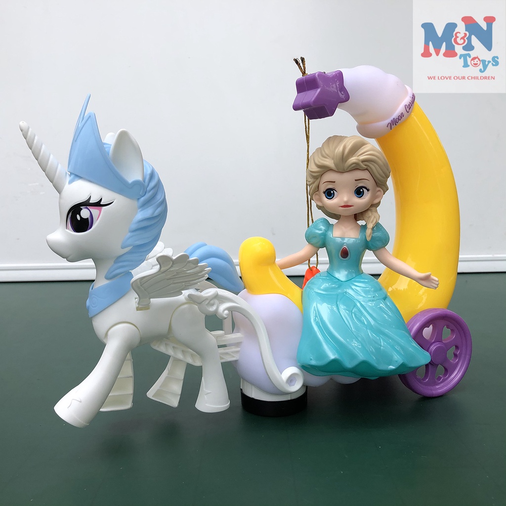 Đồ Chơi > Đồ chơi cho trẻ sơ sinh & trẻ nhỏ > Đồ chơi học tập > Đèn lồng Elsa, Sofia, Bạch Tuyết ngồi xe ngựa Pony chạy pin có nhạc có đèn cho bé chơi Trung Thu có tay cầm