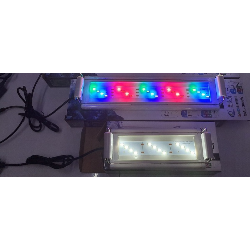 Đèn Led Máng XuanMeiLong Cho Bể Cá, Thủy Sinh - Đèn Led XML Cho Hồ Cá - Xuất xứ: Trung quốc - Hãng sản xuất: XuanMeiLong Đặc điểm: - Đèn được thiết kế tông màu trắng là chủ đạo - Tuổi thọ cao - Đèn led dãy dạng máng tiết kiệm điện cho hồ cá, thủy sinh, hồ tôm. Đèn gát thành hồ, thiết kế tinh xảo, nhỏ gọn. - Gán chân có thể kéo dài ra được. Thành tiếp xúc với thành hồ có khe cắm cho hồ kính 4- 8 ly - Đèn ánh sáng TRẮNG và phối WRGB phù hợp nuôi nhiều loại cá cảnh, giúp cá có màu sắc đẹp hơn - Kích thước:20cm-30cm -đèn 20 dùng cho hồ 20-25cm -đèn 30 dùng cho hồ 30-35cm
