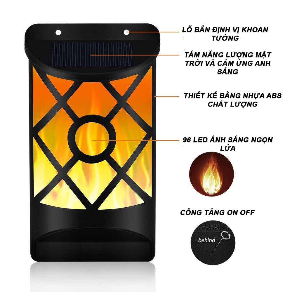 Giới thiệu Đèn năng lượng mặt trời sân vườn 96 led ngọn lửa tích điện gắn tường chống nước ipx6 cảm biến ánh sáng Chất lương tốt