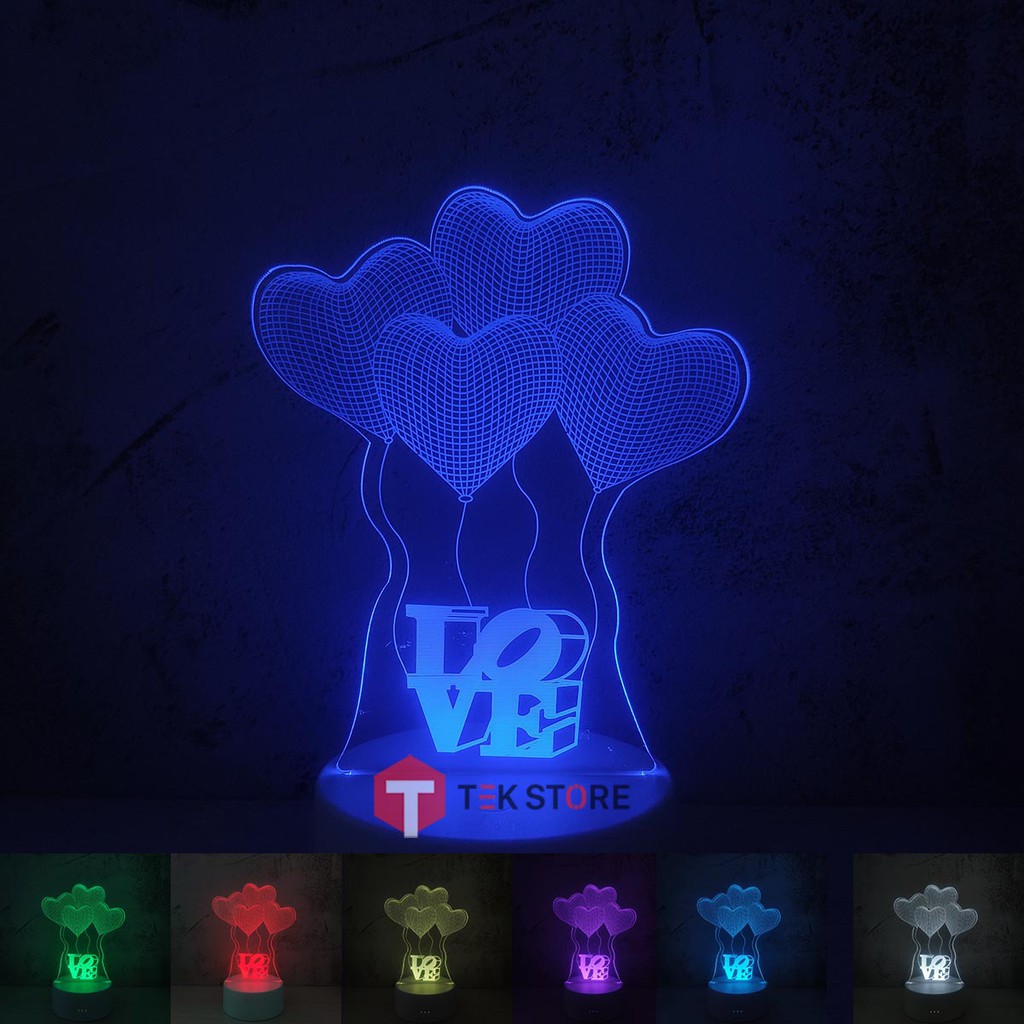 Giới thiệu Đèn Ngủ 3D Bong Bóng Love (3 Màu - 7 Màu - 16 Màu Kèm Điều Khiển)