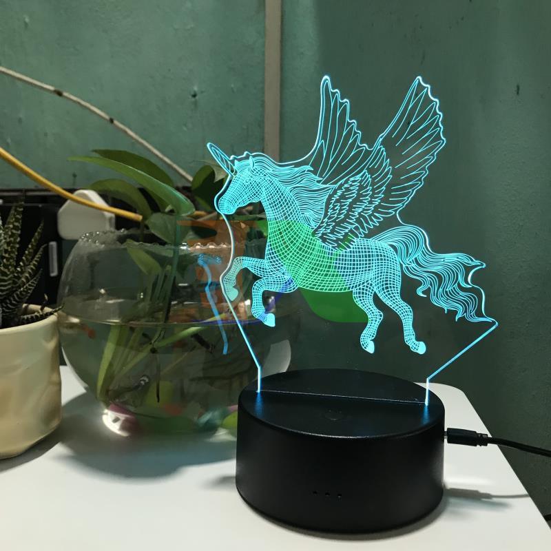 Giới thiệu Đèn ngủ, đèn trang trí Led 3D, Đèn ngủ 7 màu mini hình Con Ngựa Bay