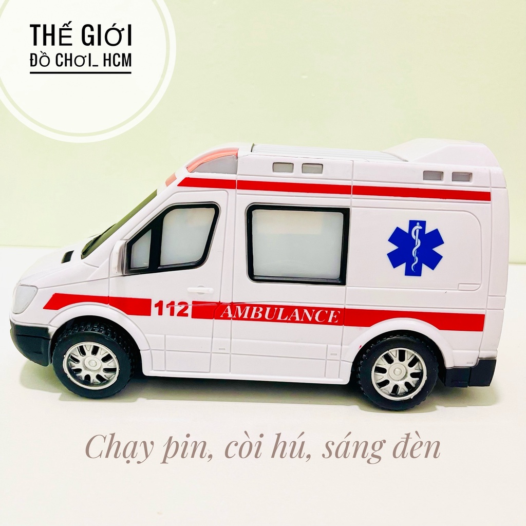 Sản phẩm là hộp đồ chơi xe cứu thương cấp cứu dành cho bé, thích làm bác sĩ. - Khi chạy xe sẽ sáng đèn, còi hú và đặc biệt khi gặp vật cản xe sẽ quay đầu, chắc chắn các bé sẽ thích ạ! - Sản phẩm cam kết y hình, do shop tự chụp/ quay 100%. - Kích thước: 25 x 7 x 10 cm - Sử dụng 3 pin ( pin đồng hồ).