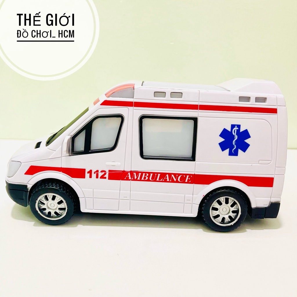 Giới thiệu [Đèn nhạc, xe tự lái] Hộp đồ chơi xe cứu thương cấp cứu dành cho bé, thích làm bác sĩ