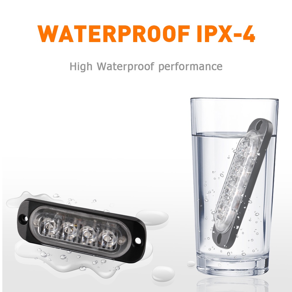 【💎Mô tả💎】 💥 Mỗi đèn có 4 đèn LED độ sáng cao, góc nhìn rộng và đèn nháy cường độ cao, sáng hơn gấp đôi so với trước đây! Cải thiện độ an toàn khi lái xe và tránh tai nạn giao thông. 💥 Đèn nhấp nháy cường độ cao giúp bạn đảm bảo an toàn khi lái xe và tránh tai nạn giao thông. 💥 Thiết kế siêu mỏng và chống thấm nước, ống kính PC chống thấm nước ABS cao, hiệu suất tản nhiệt tốt hơn, khả năng lắp vô tận. Rất bền và hữu ích. 💥 Tuổi thọ cao hơn 100 lần so với bóng đèn tiêu chuẩn và tuổi thọ hơn 50.000 giờ. 💥 Phương pháp đấu dây 1. Nối dây màu đỏ với cực dương. 2. Dây đen được kết nối với các thiết bị đầu cuối âm. 💥 Nếu bạn có bất kỳ câu hỏi nào, xin vui lòng liên hệ với chúng tôi.