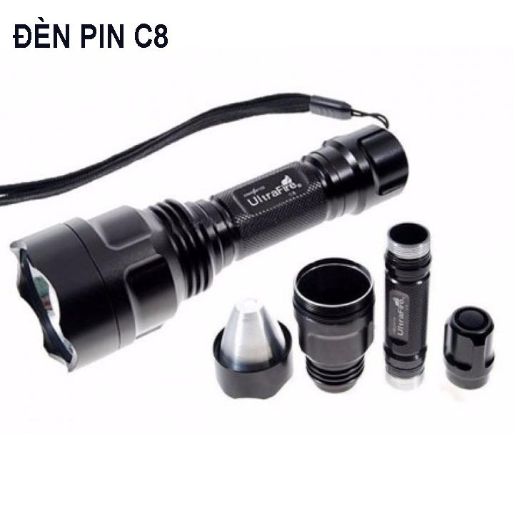 Đèn pin siêu sáng C8 được làm bằng hợp kim nhôm siêu bền, siêu nhẹ, có độ bền thách thức thời gian giúp bạn sử dụng lâu dài hơn với các loại đèn pin sạc thông thường khác. Sản phẩm sử dụng chip điện tử (ledchip) Cree Q5 của Mỹ cho ánh sáng chói lòa, độ sáng đến 500 Lumen.