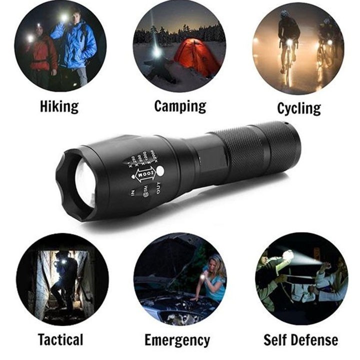 Đèn được kết hợp với thân bằng kim loại hợp kim nhôm – magiec có độ bền cao, chắc chắn Thiết kế nhỏ gọn tiện lợi, có thể sử dụng để phá kính khi khẩn cấp Chức năng: được sử dụng vào ban đêm khi đi picnic, cắm trại, du lịch Sử dụng: đèn led có độ sáng cao (lên đến 800 lumen) Có 5 chế độ chiếu sáng khác nhau thuận tiện cho người dùng Thiết kế zoom thụt đẩy giúp bán kính chiếu sáng được mở rộng hơn