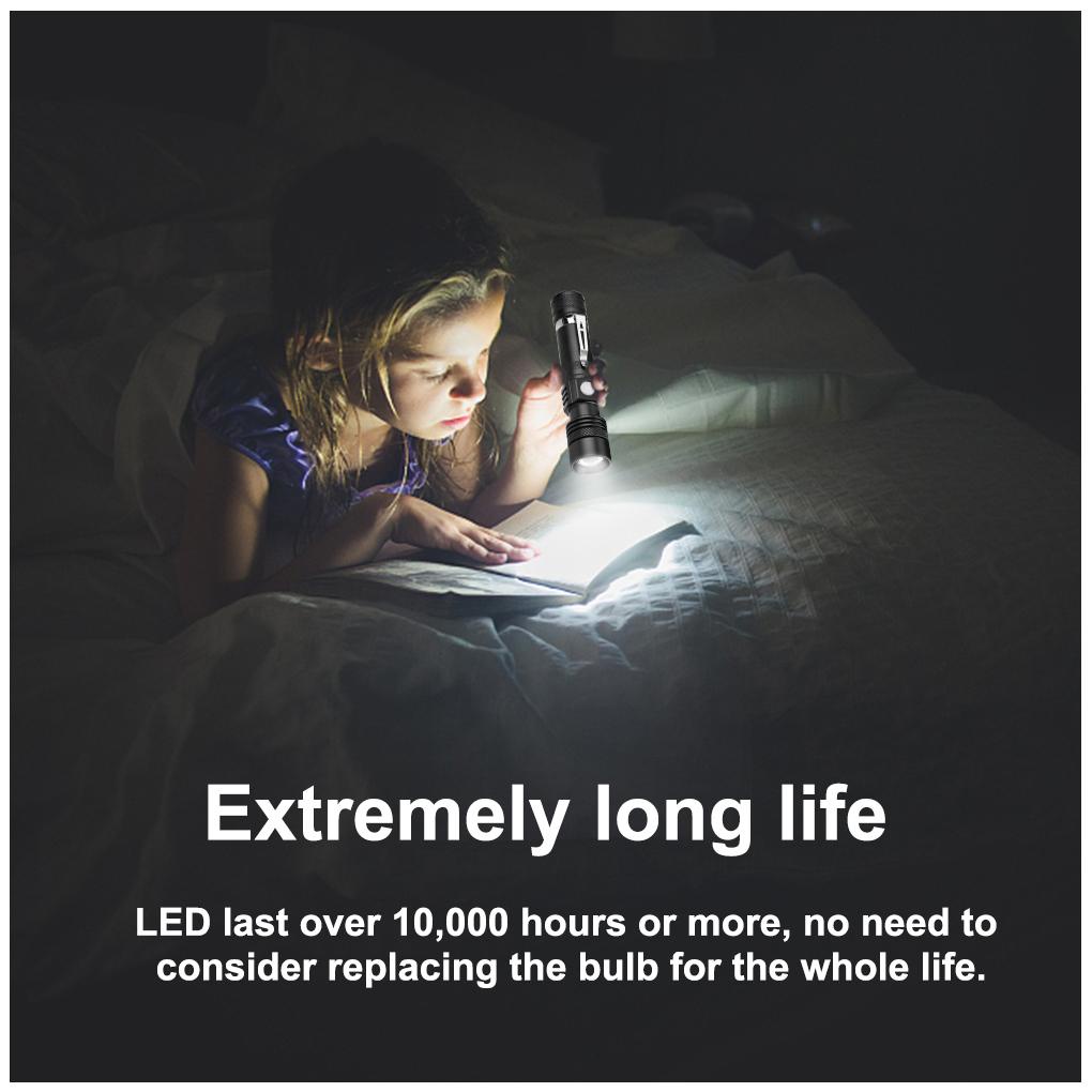 Có thể sạc lại - Đèn pin hợp kim nhôm có thể được sạc bằng cáp USB , vì vậy bạn không cần phải lo lắng ngay cả khi pin sắp hết .